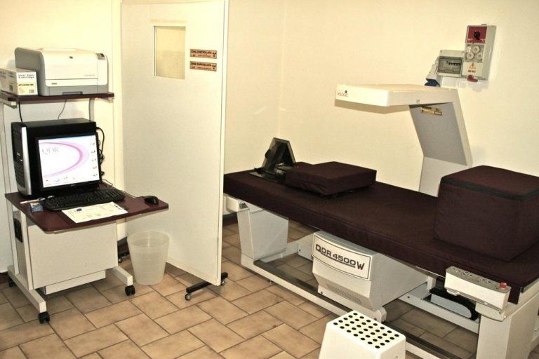 Il densitometro a raggi x per la dexa, HOLOGIC MOD. QDR4500W, utilizza la tecnica a raggio pulsato “fan beam”, che consente l'uso di bassa dose di radiazioni.